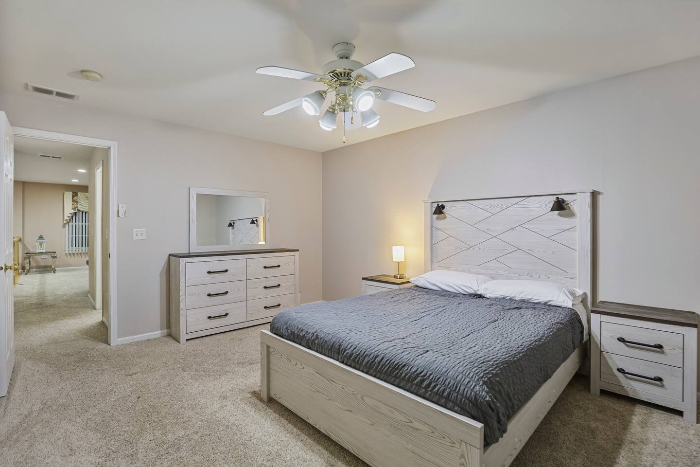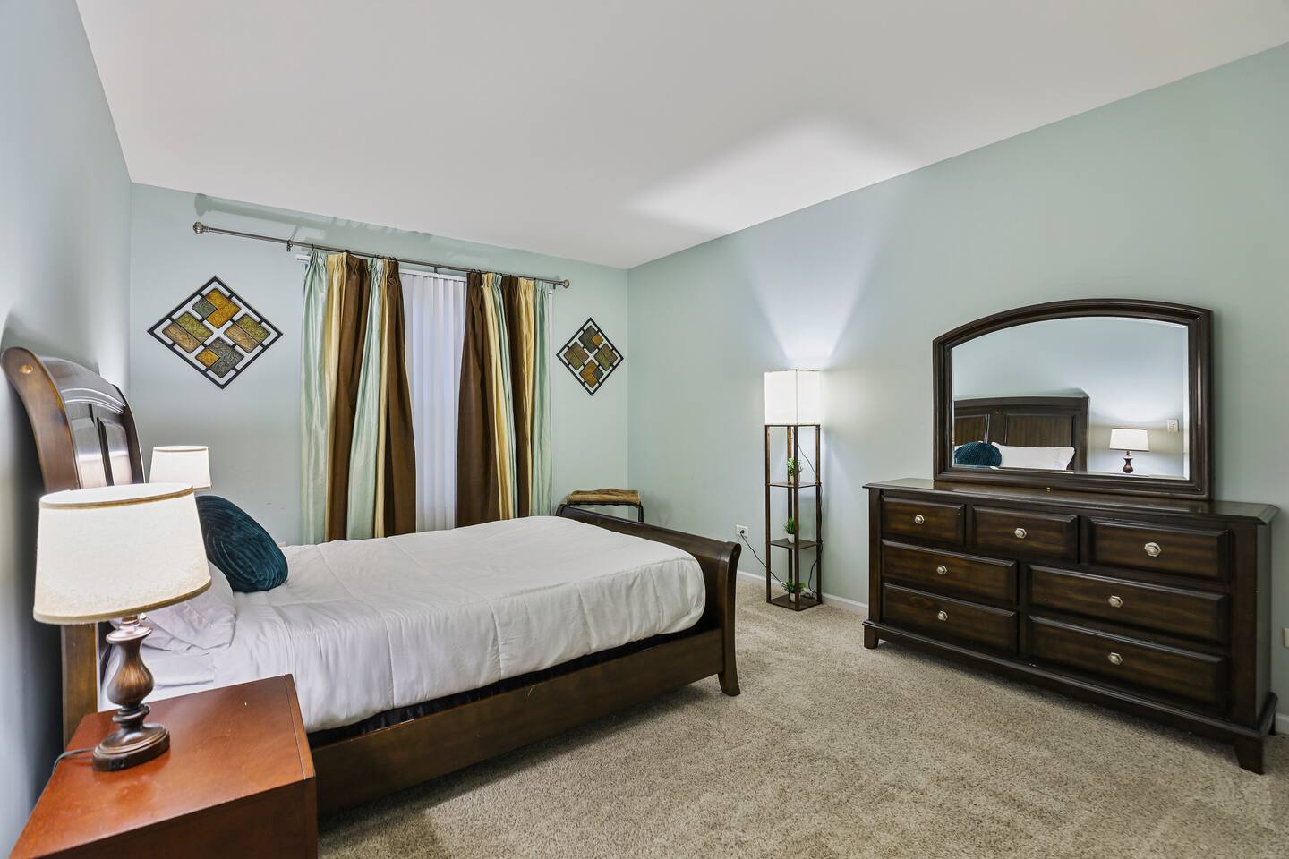 • One bedroom has a queen-size bed