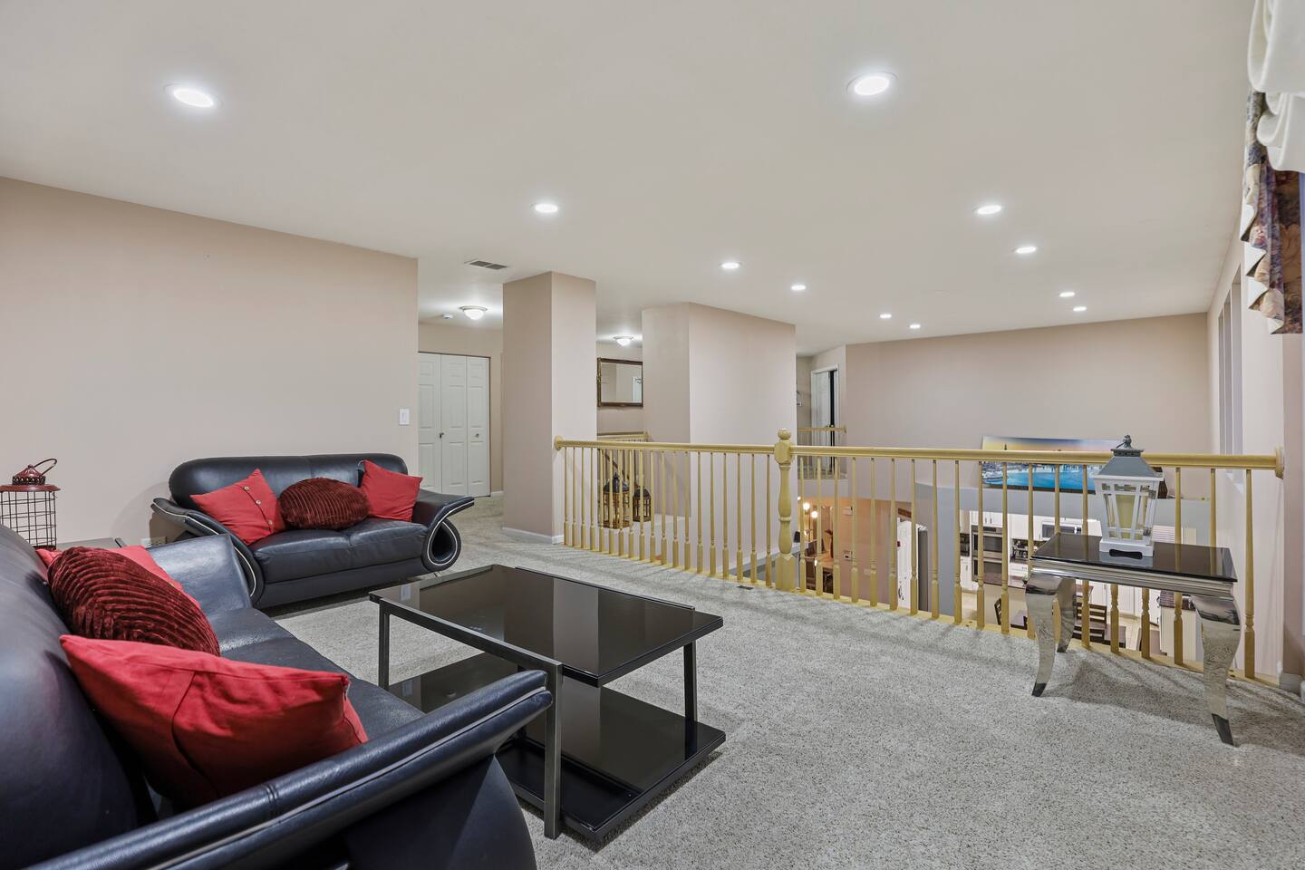 On the lower level, you’ll find a fourth living area combined with a game room, plus additional sleeping space for larger groups.
