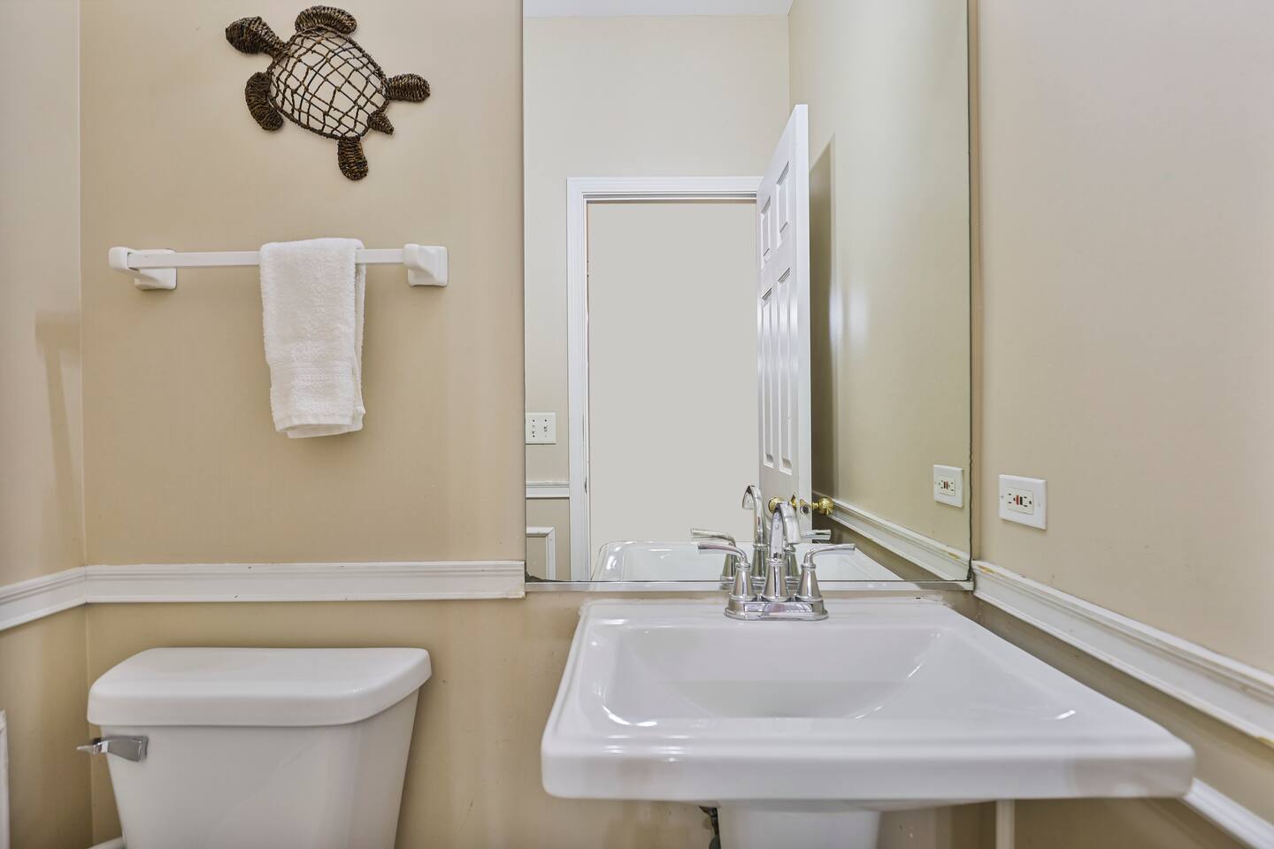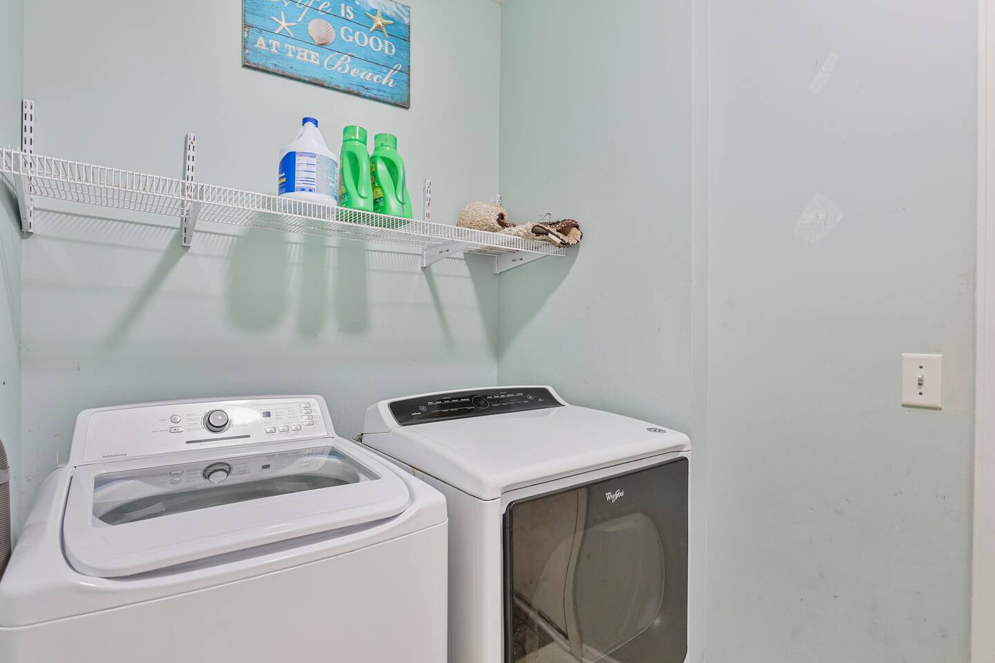 On the main level, you’ll find two cozy living rooms, an open-concept kitchen and dining area, a bedroom, a powder room, and a laundry room—perfect for gathering, cooking, and keeping things fresh during your stay.