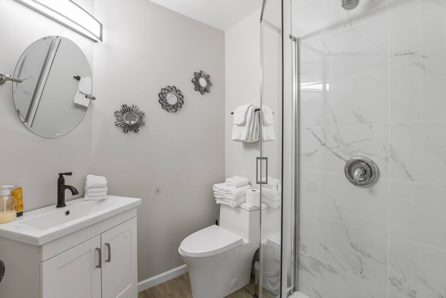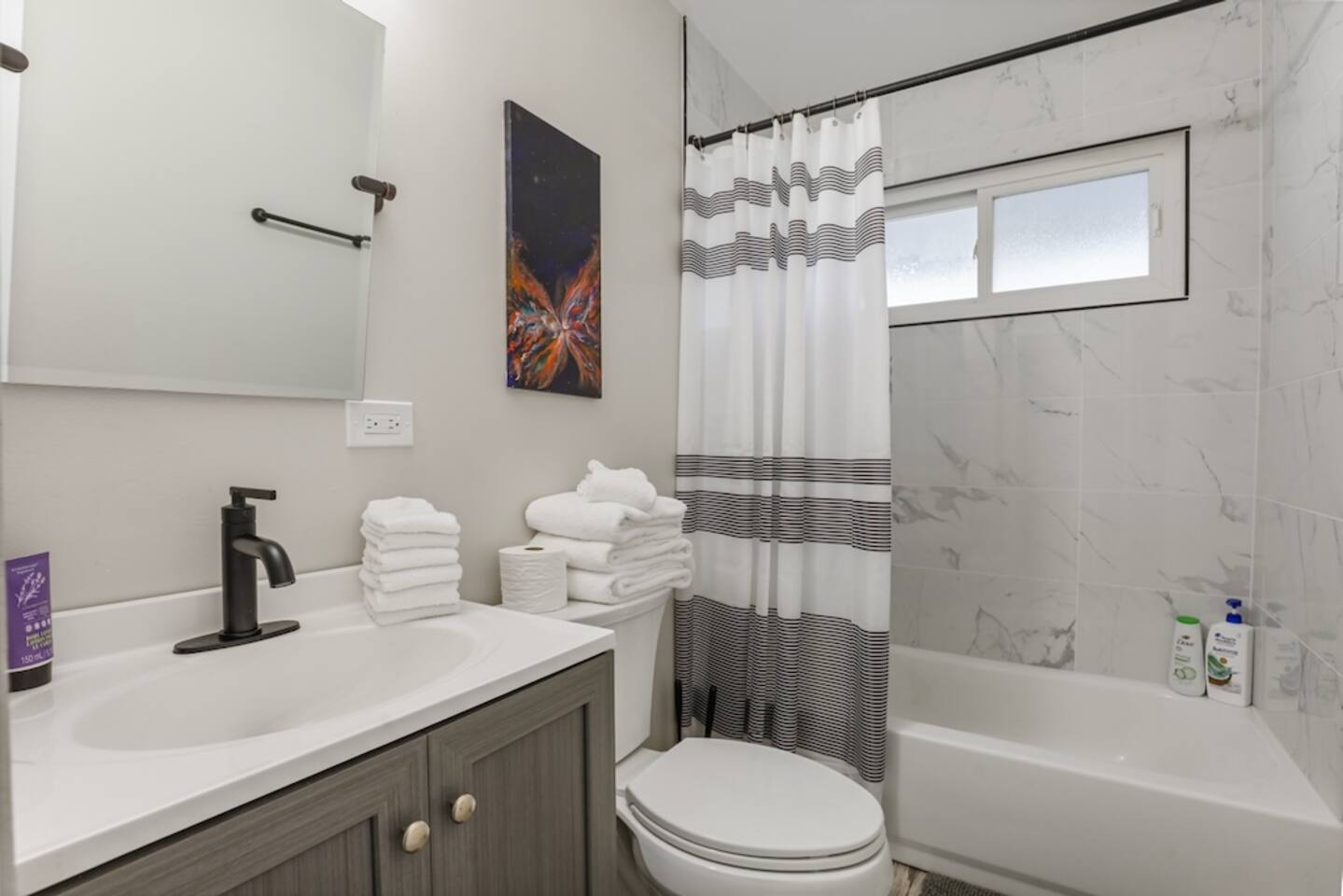 **Modern Bathrooms**: Both bathrooms have been fully updated with modern touches, creating a spa-like experience for guests to unwind and recharge.