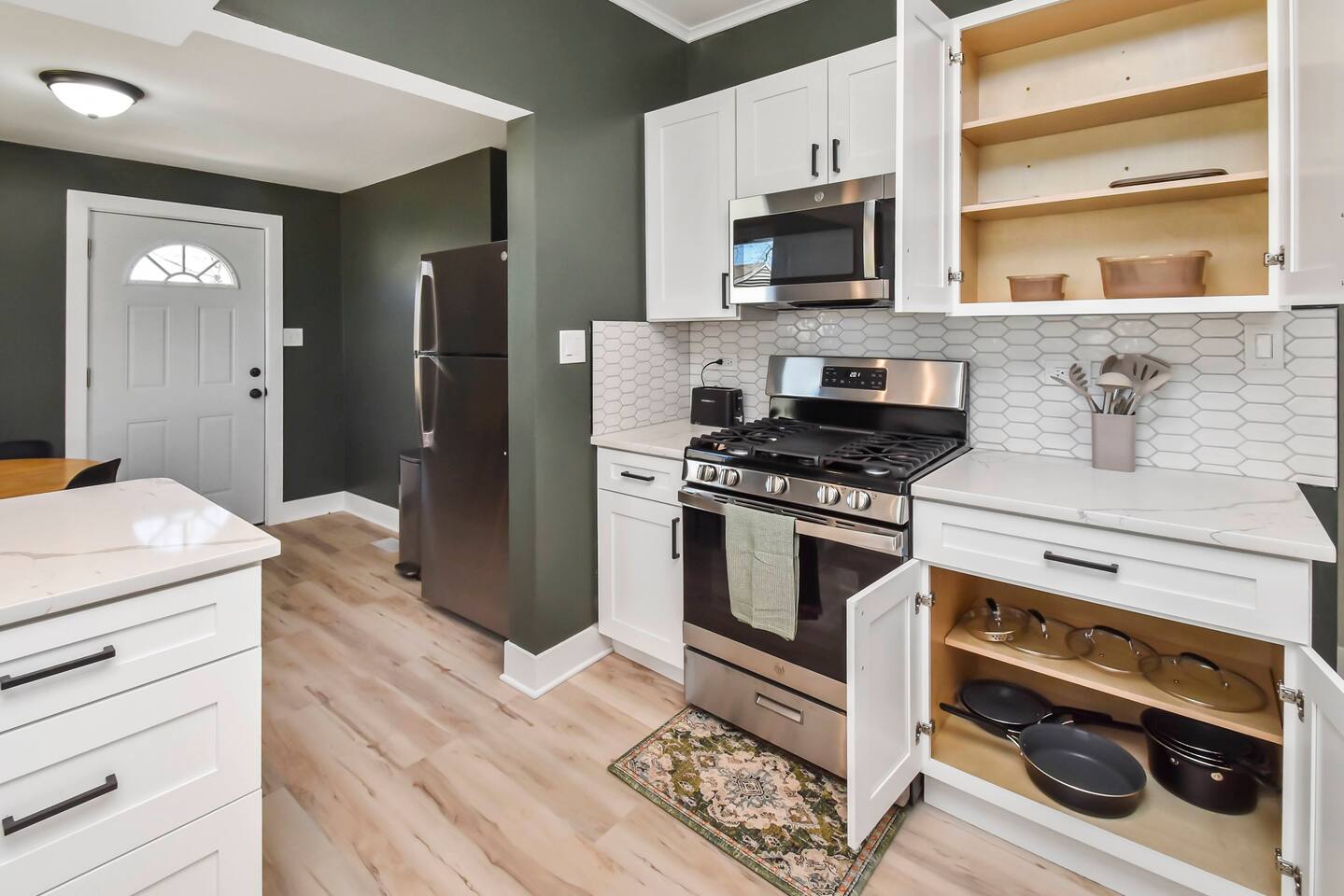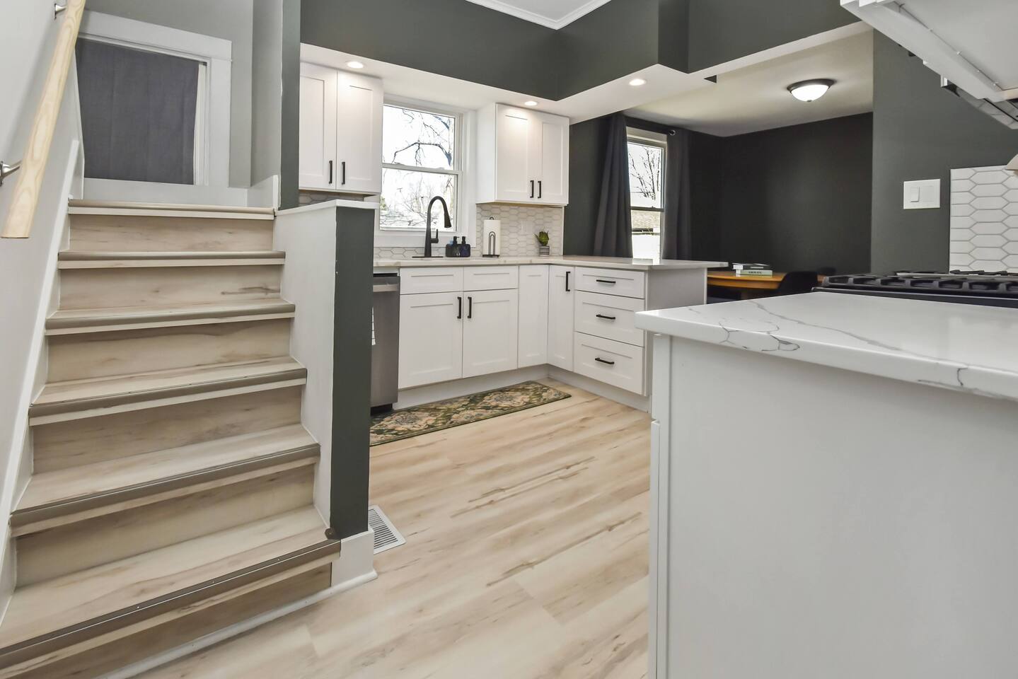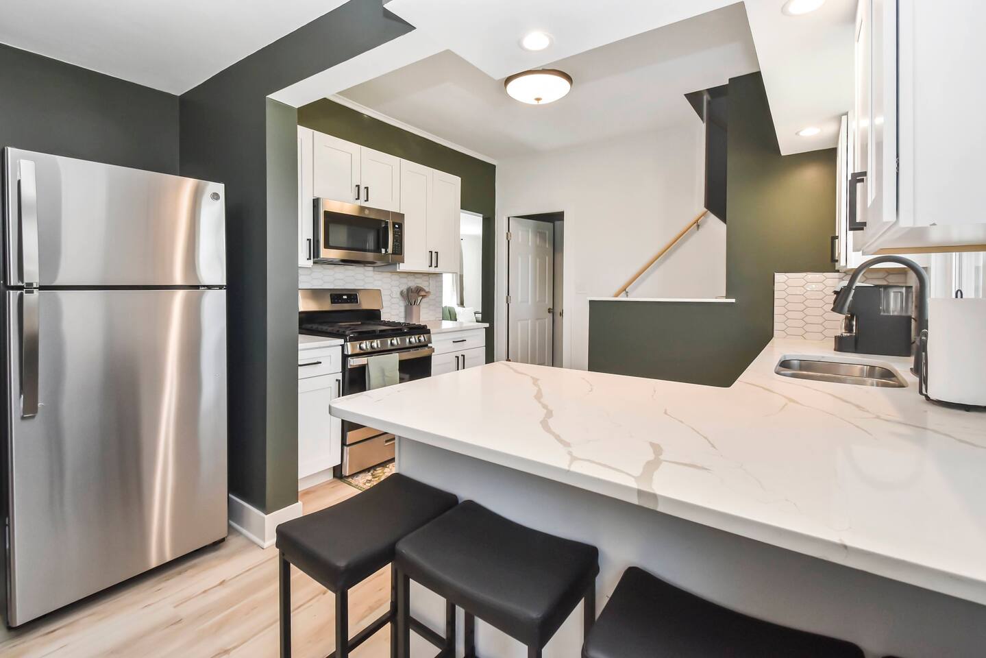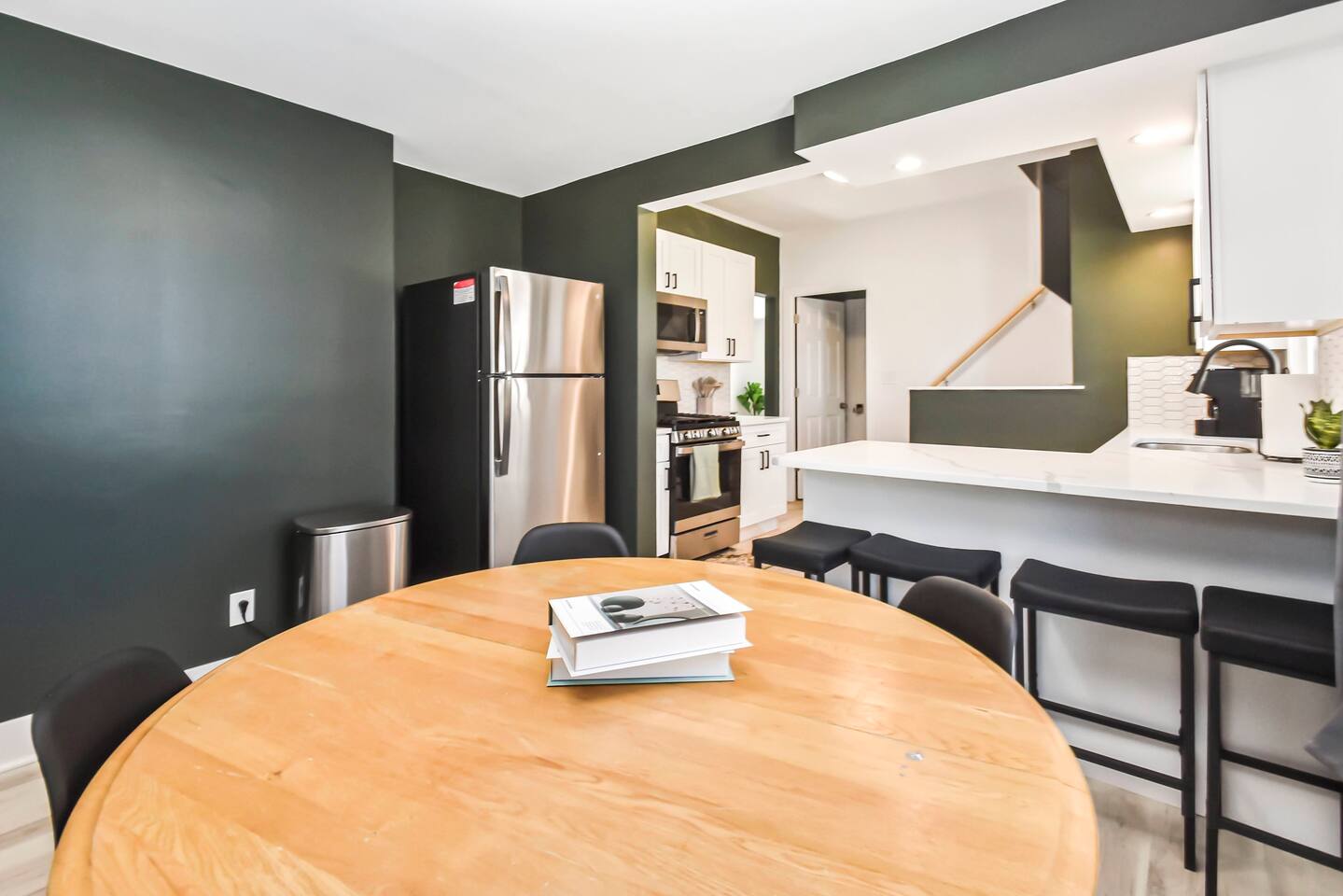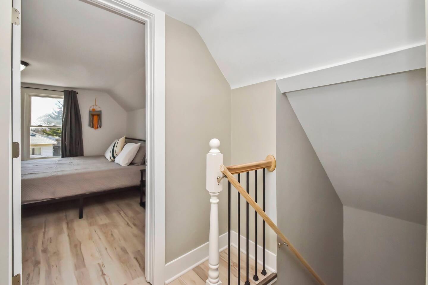 Step inside to boho vibes with thoughtful touches throughout. On the main level, you’ll find the cozy living room and a fully remodeled kitchen with brand-new appliances, making cooking a breeze. There are two bedrooms and one full bathroom on this level. Upstairs, you’ll find two additional bedrooms and a second full bathroom — perfect for families or groups.