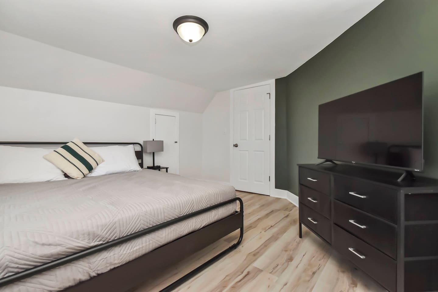 All of our beds feature comfortable memory foam mattresses to ensure a great night’s sleep. The home also offers high-speed internet, a fully fenced yard, and a washer and dryer located in the unfinished basement for your convenience.
