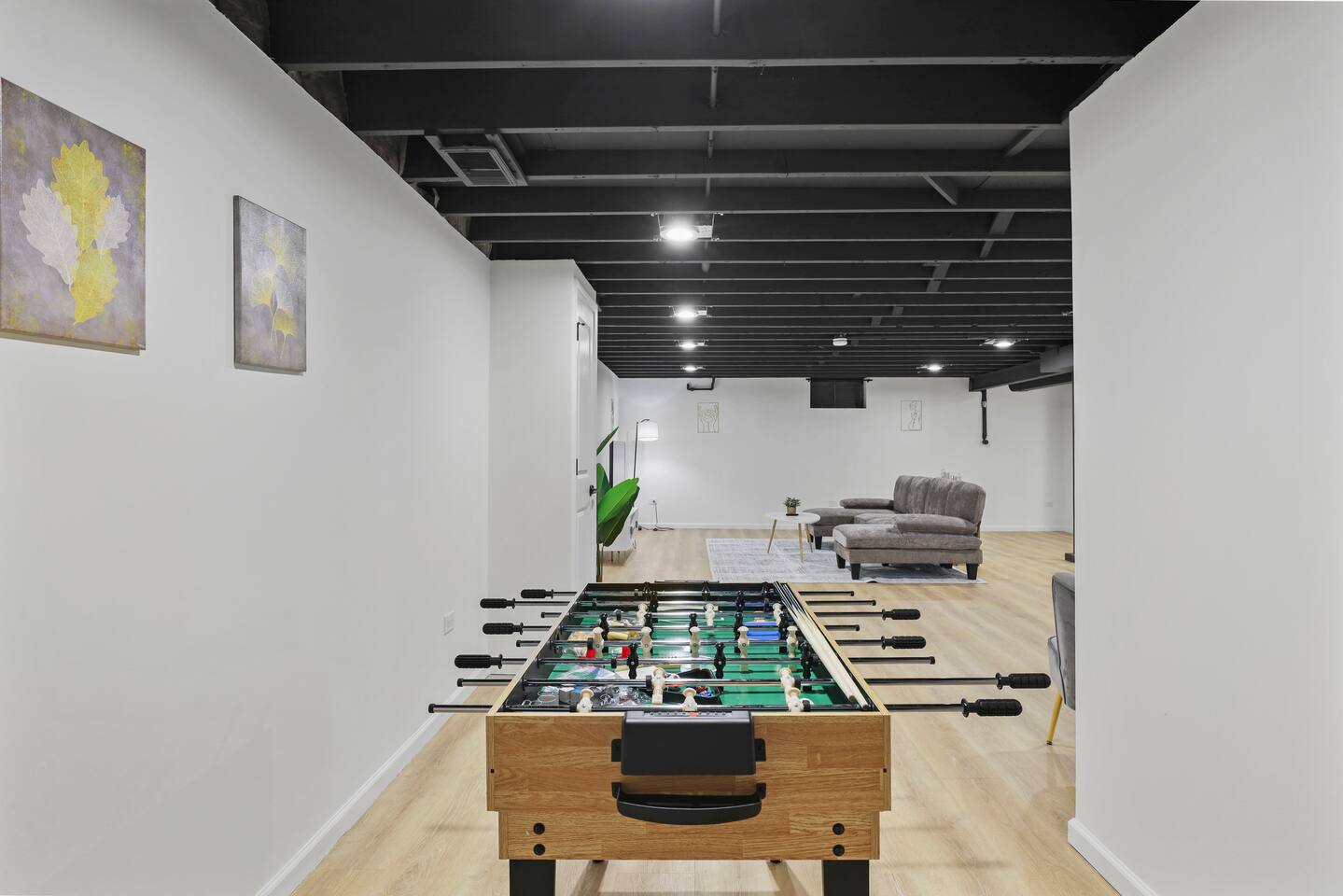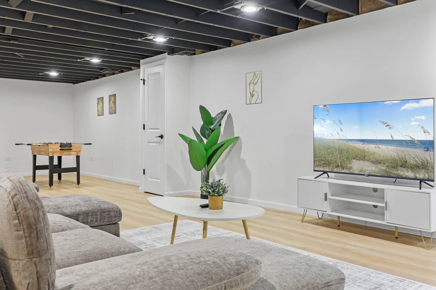 Upstairs, you’ll find all three bedrooms, each furnished with comfortable memory-foam mattresses to ensure a restful night’s sleep. The open-concept living and dining area feels bright and spacious, making it easy for everyone to stay connected.