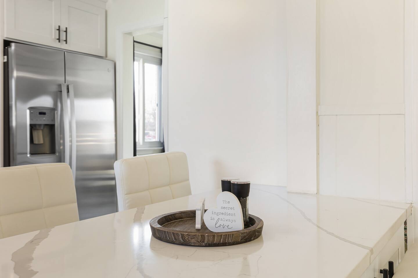 You’ll love the open-concept kitchen with stunning white quartz countertops, a center island, and everything you need to cook up your favorite meals. It’s centrally located between two inviting living spaces, making it the heart of the home.