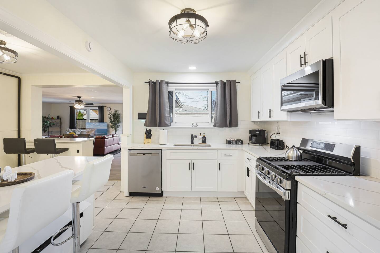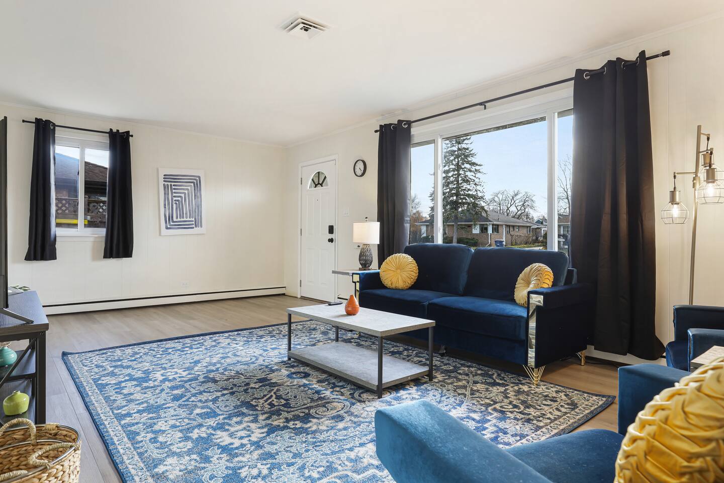 Welcome to this beautifully updated 3-bedroom, 1.5-bath ranch in Des Plaines—your perfect blend of comfort and convenience. The fully stocked kitchen makes meal prep a breeze, and with multiple smart TVs, high-speed Wi-Fi, and even a foosball table, there’s something for everyone to enjoy. Step outside to your private backyard oasis, complete with outdoor couches, perfect for morning coffee. Located just minutes from O’Hare, downtown Chicago, shopping, & dining.