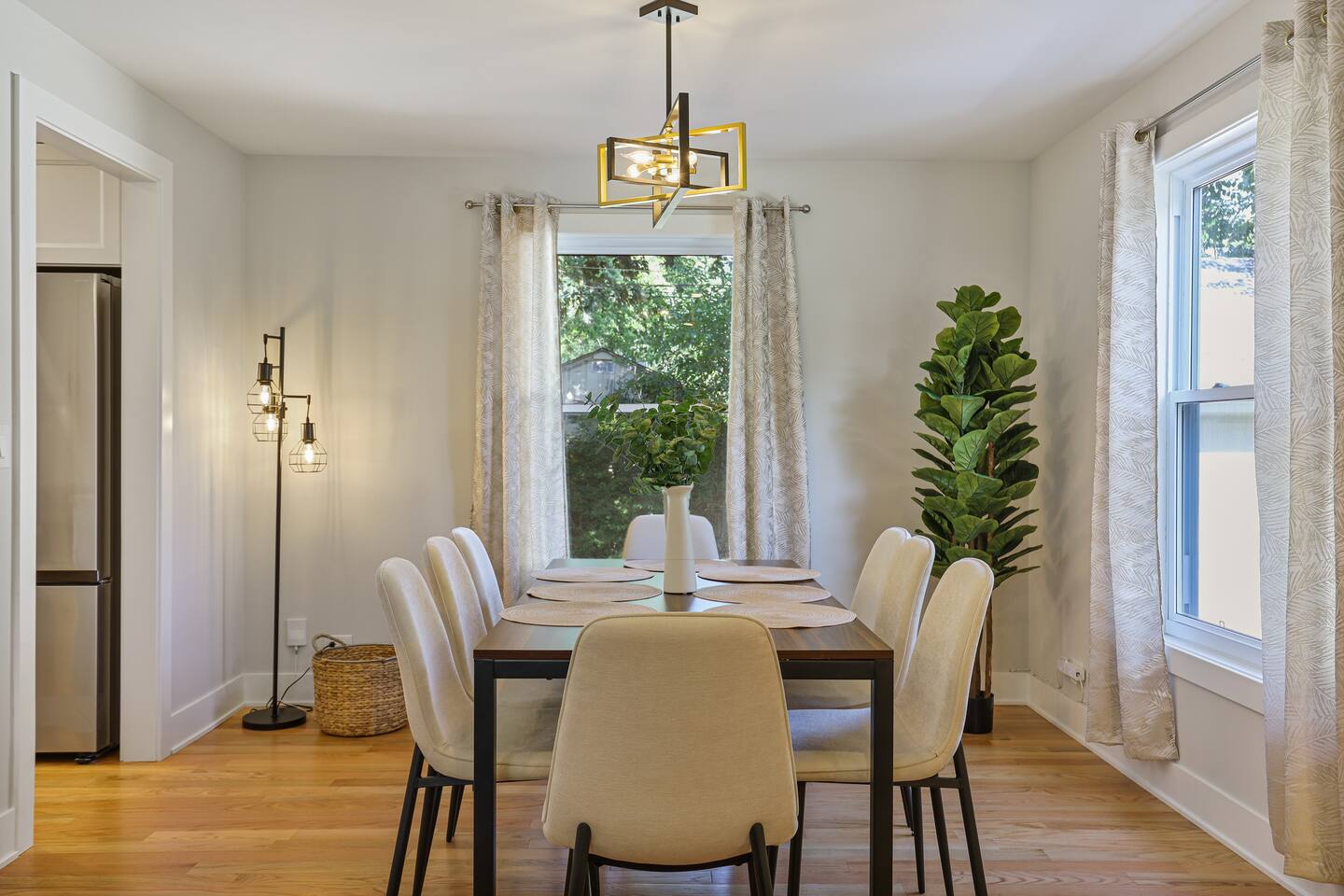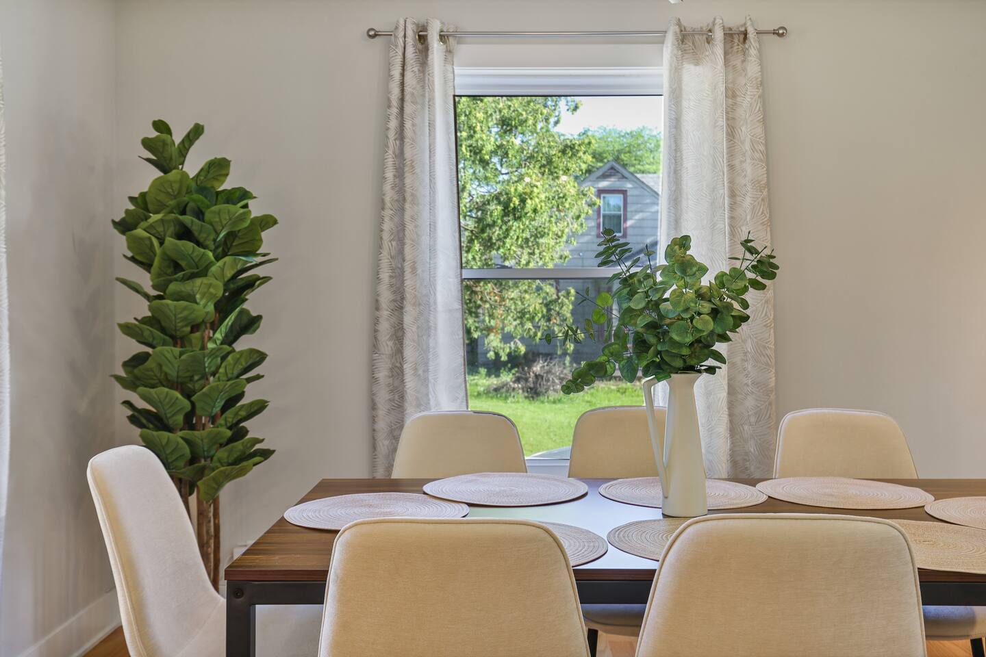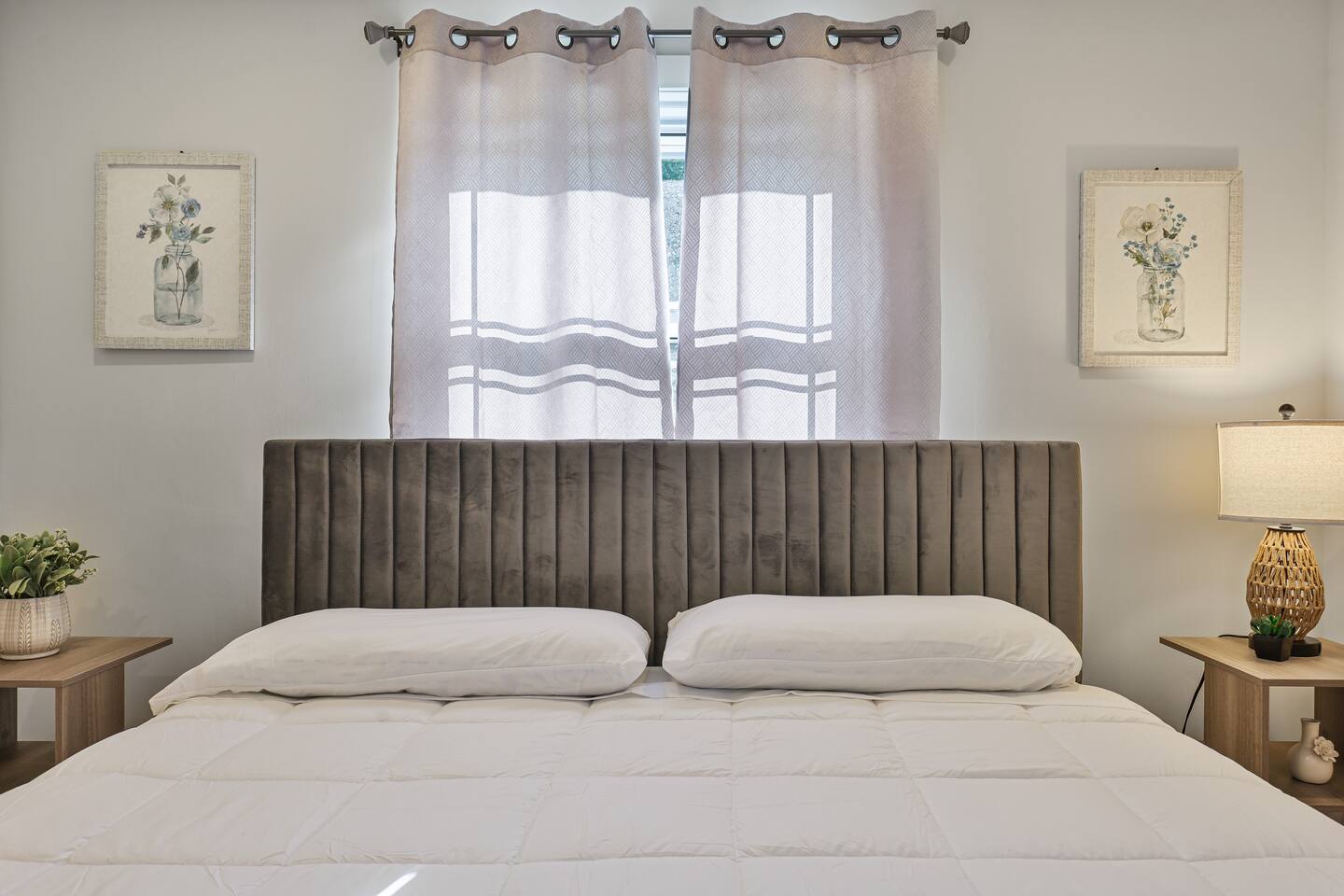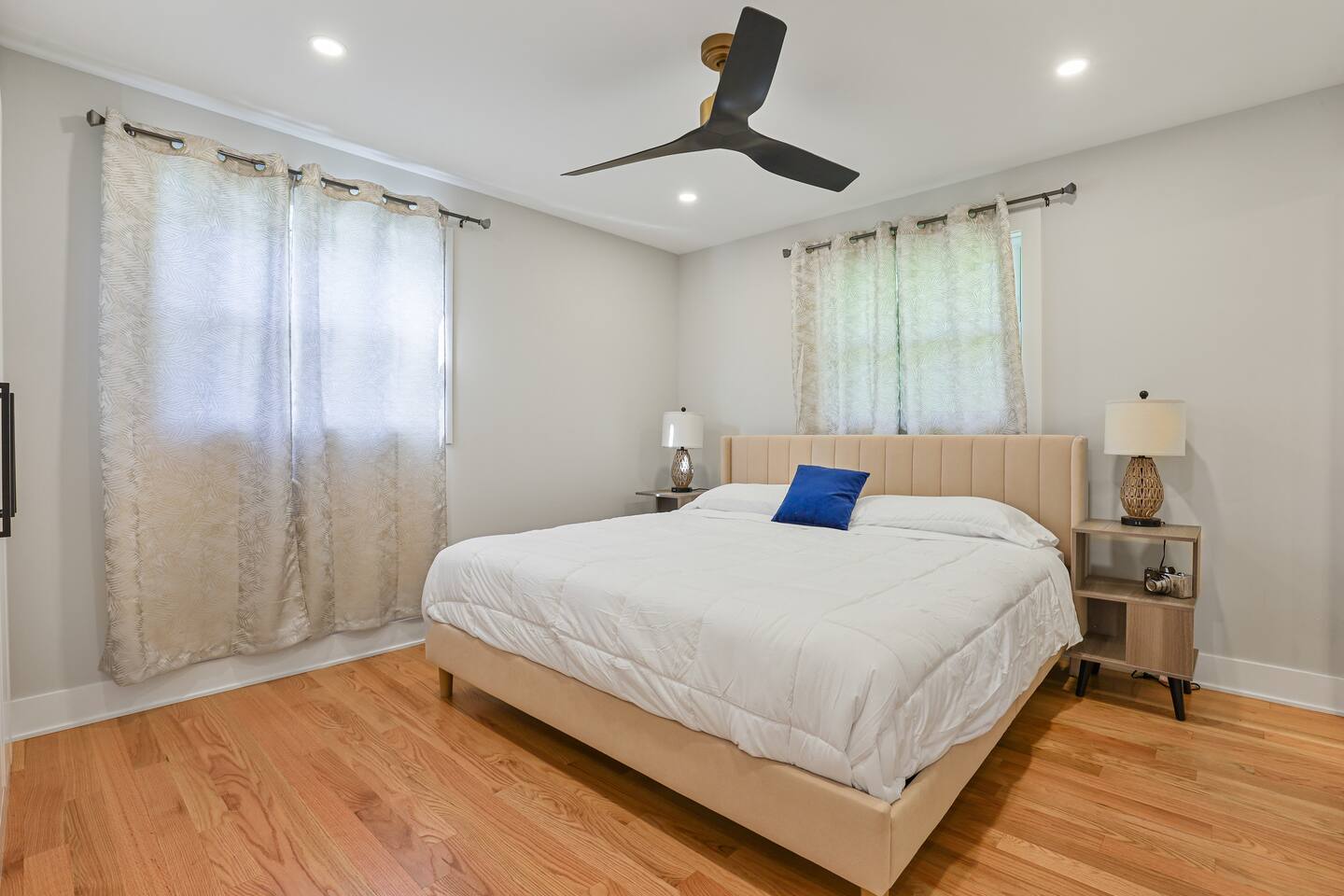 Sleeps 6 comfortably across three king-size beds, with an air mattress available upon request for a couple of extra guests. Please note: while the backyard is partially fenced, it’s spacious and welcoming.