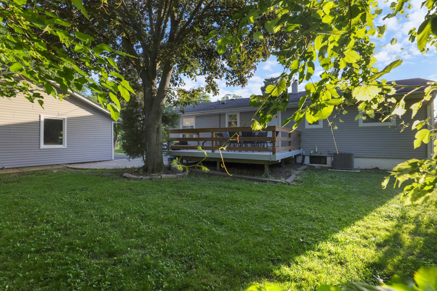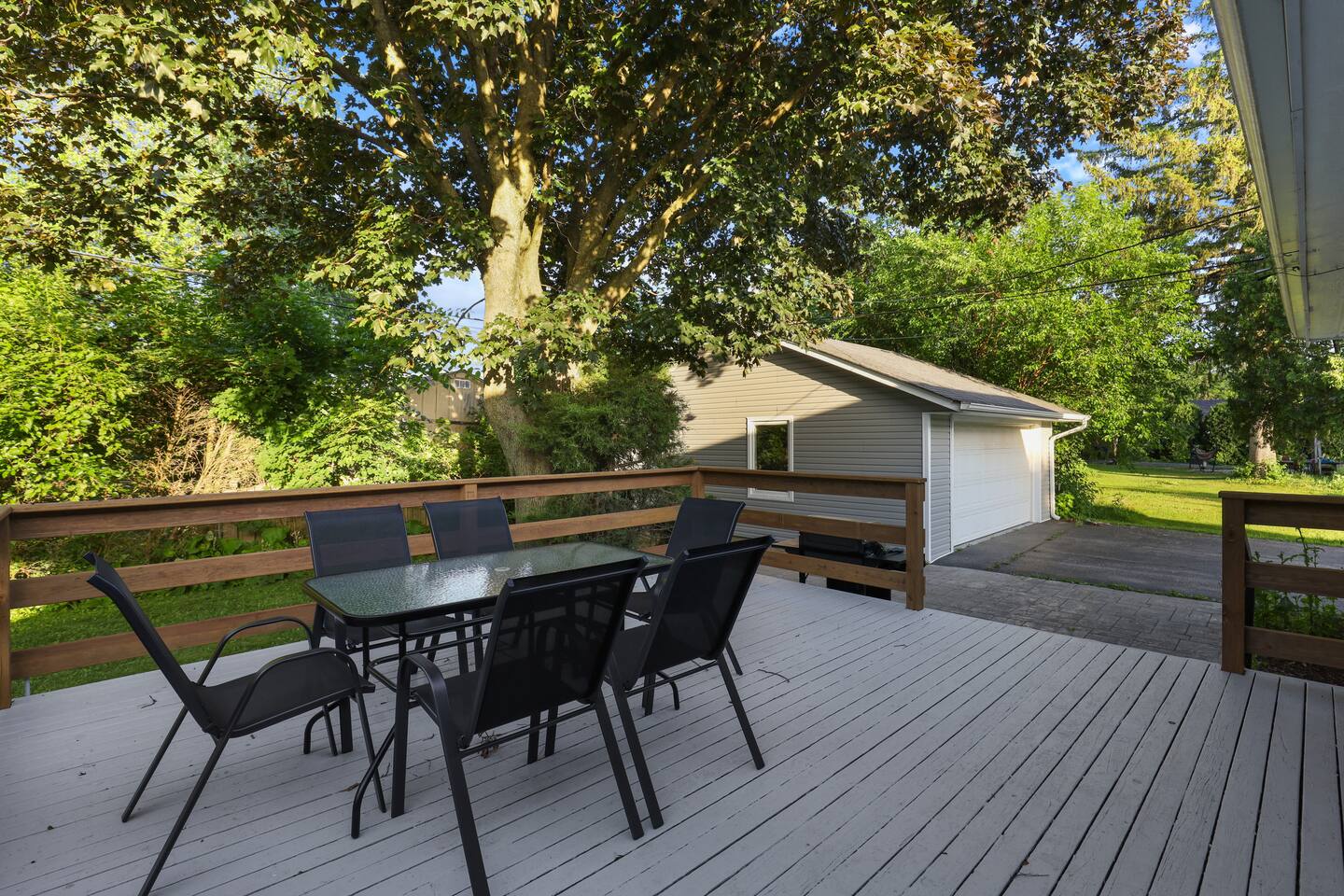 • Enjoy dinner on the back deck, complete with outdoor dining, seating, and a grill