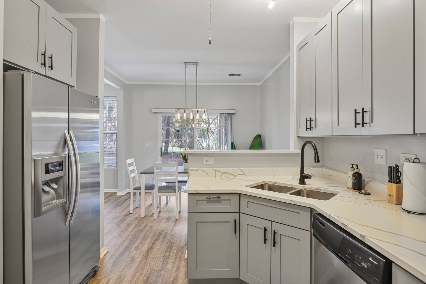 Welcome to this stunning 3-bedroom, 2.5-bath townhouse in beautiful Naperville! Featuring an open-concept kitchen, dining, and living area that flows perfectly for gathering, this home is ideal for families and groups. Upstairs, you’ll find three generous bedrooms including a luxurious master suite with a huge walk-in closet and spa-like en suite with both a soaking tub and separate shower. Located minutes from downtown Naperville as well as endless shopping at Fox Valley Mall.