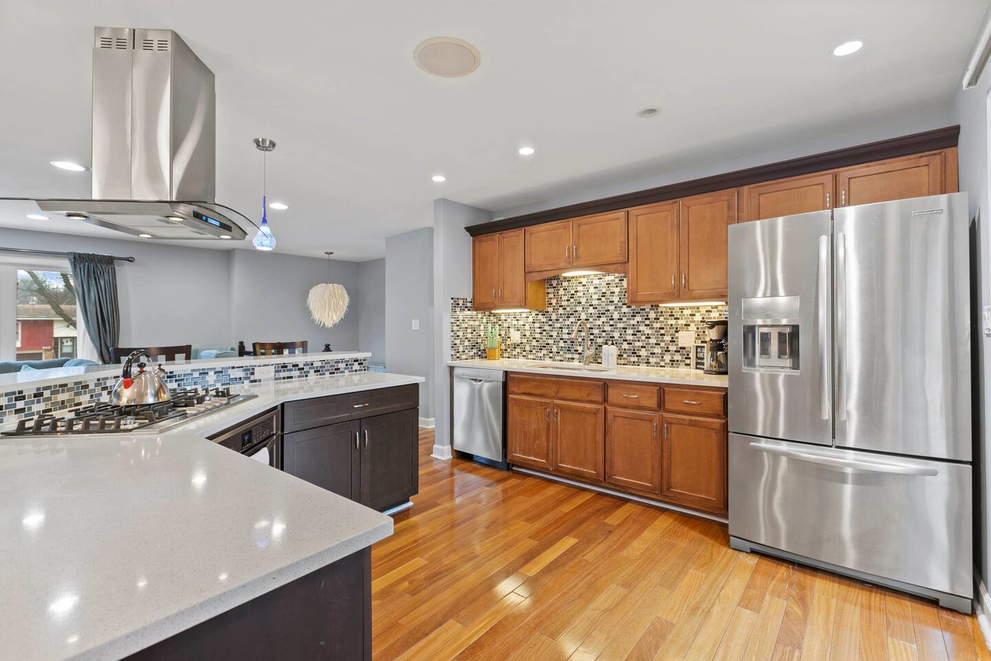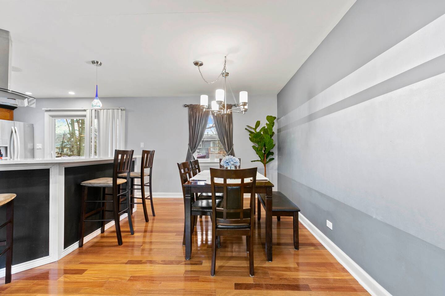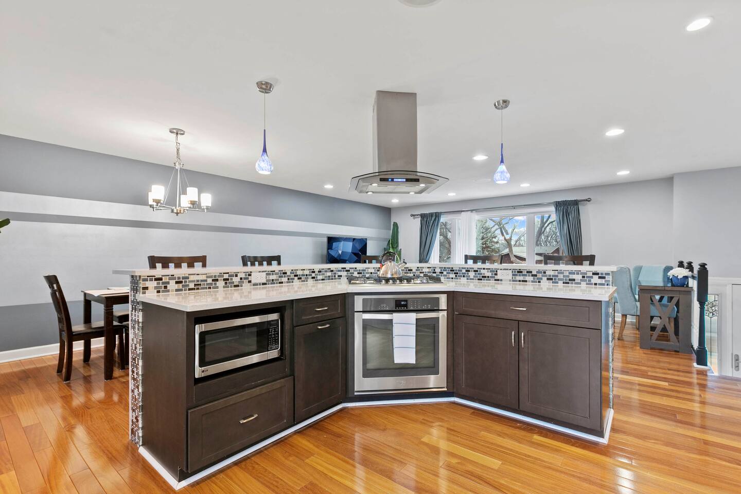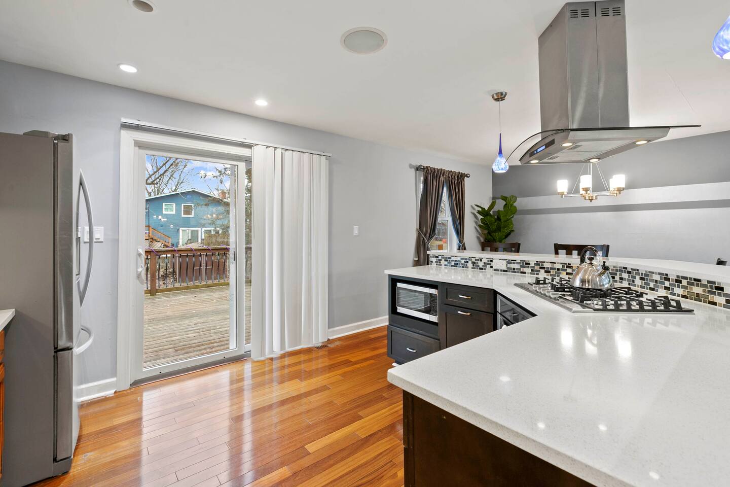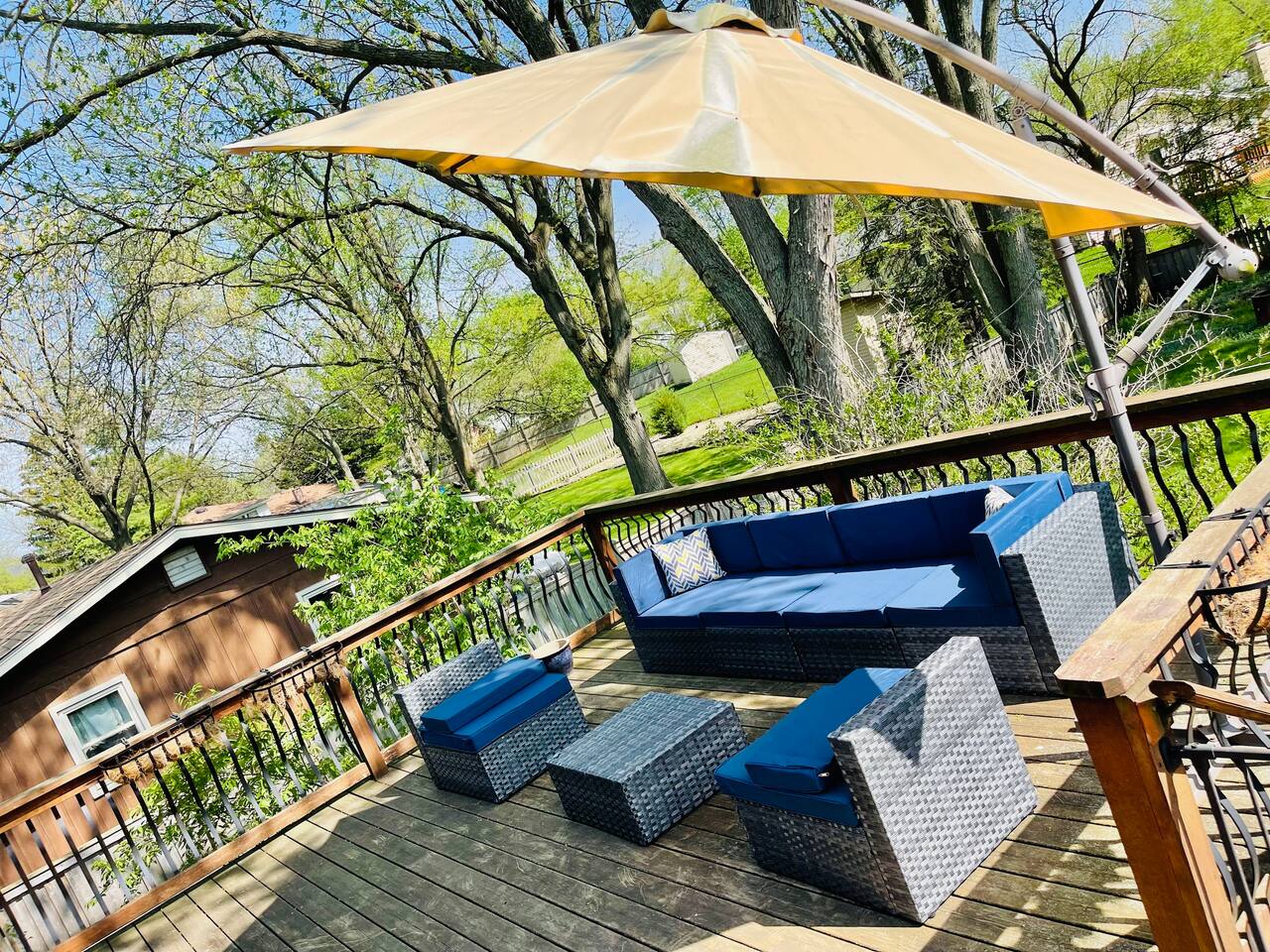 Welcome to this beautifully designed 3 bedroom, 3 bath home (plus family room suite) in beautiful Downers Grove. This home sleeps 10 guests and is ideally located near parks, entertainment, shopping and transportation. This home boasts an open floor plan on the main level with a walkout onto an amazing deck that overlooks the relaxing and shade filled yard. Enjoy this beautiful retreat.