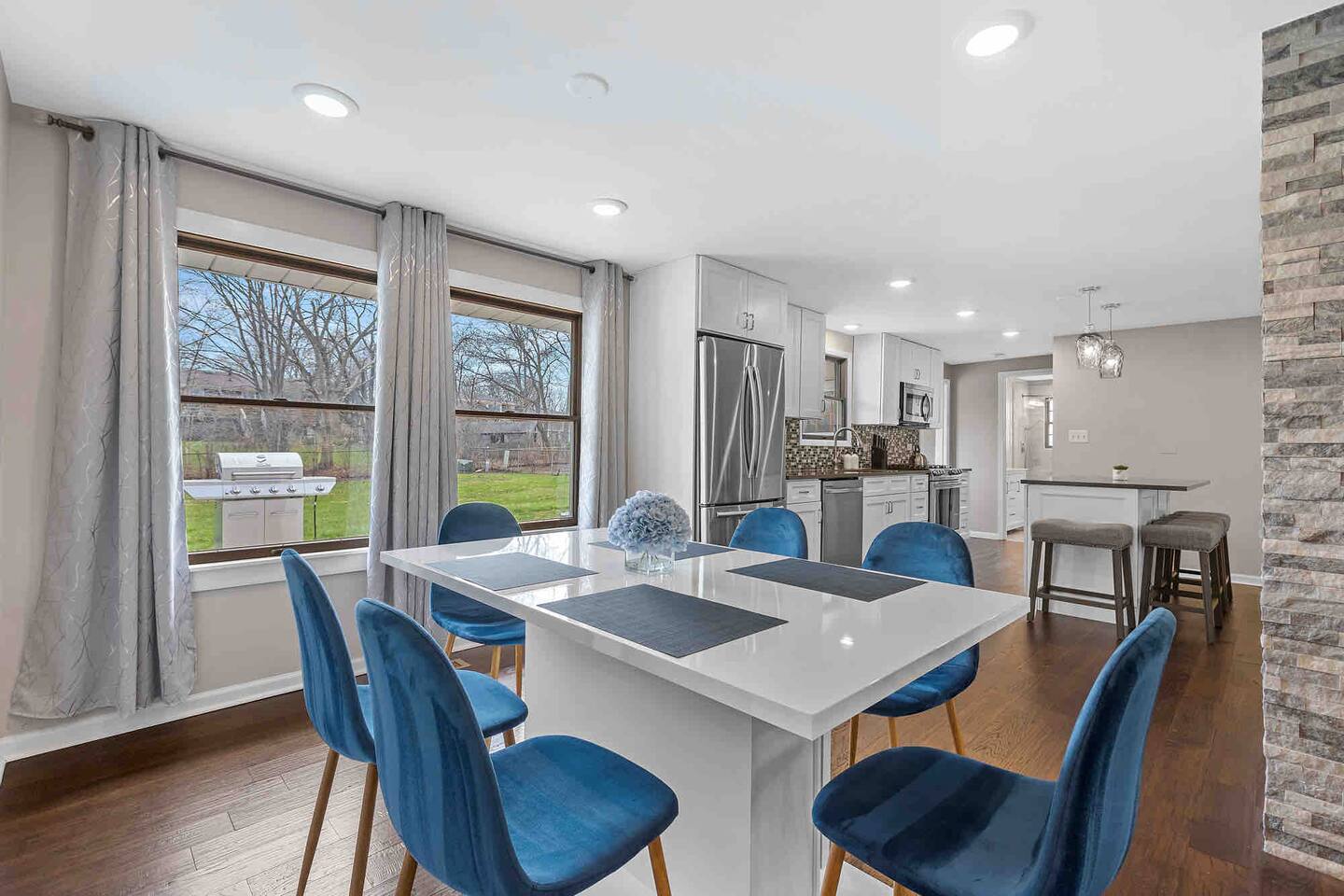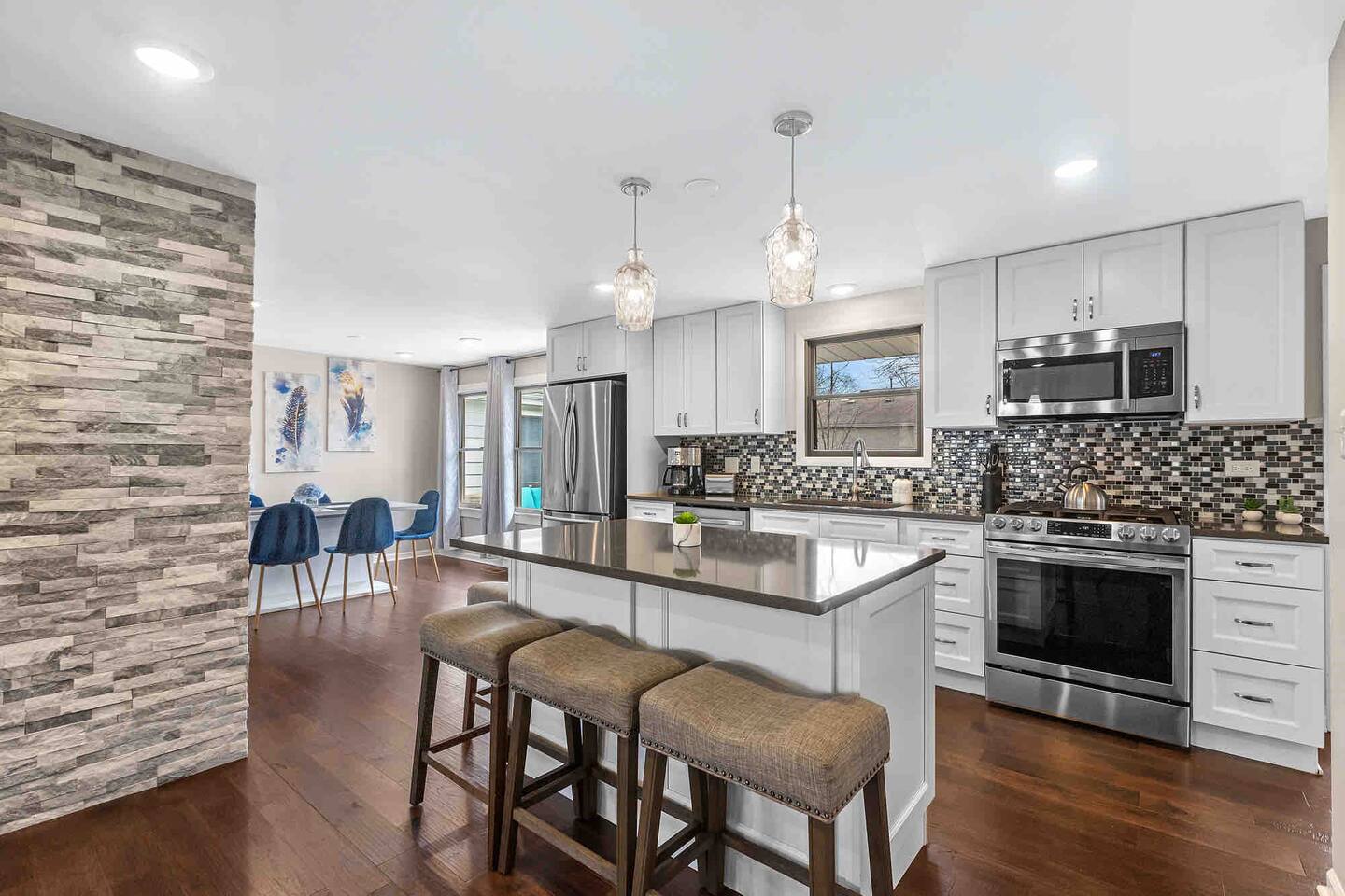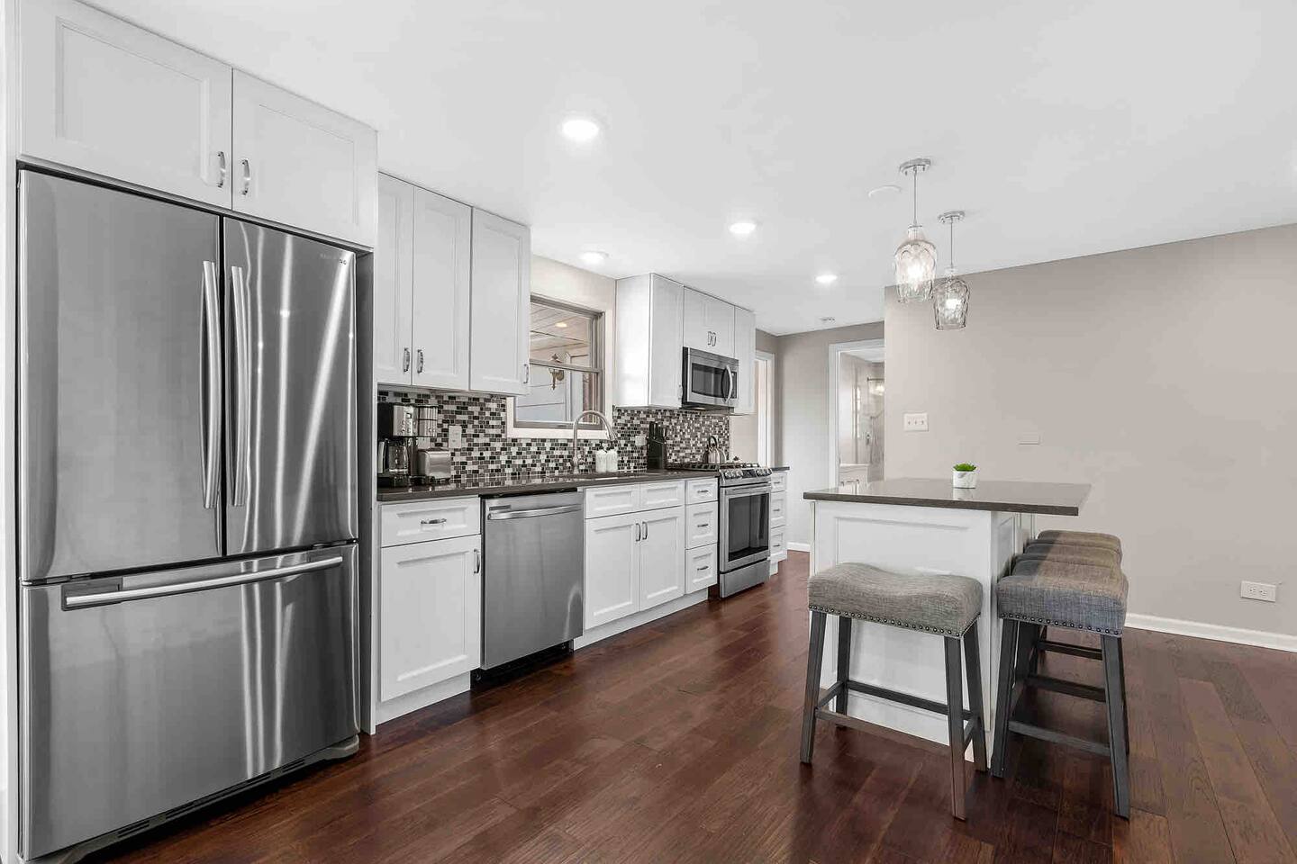 Welcome to "Radiance," you'r Schaumburg sanctuary, where luxury meets convenience. This spacious 4-bedroom, 2-bathroom home is designed to ensure your stay is nothing short of spectacular, comfortably accommodating up to 8 guests. This is a one level home so it is a perfect choice for guests with mobility issues, this home also features a large fully fenced in yard.