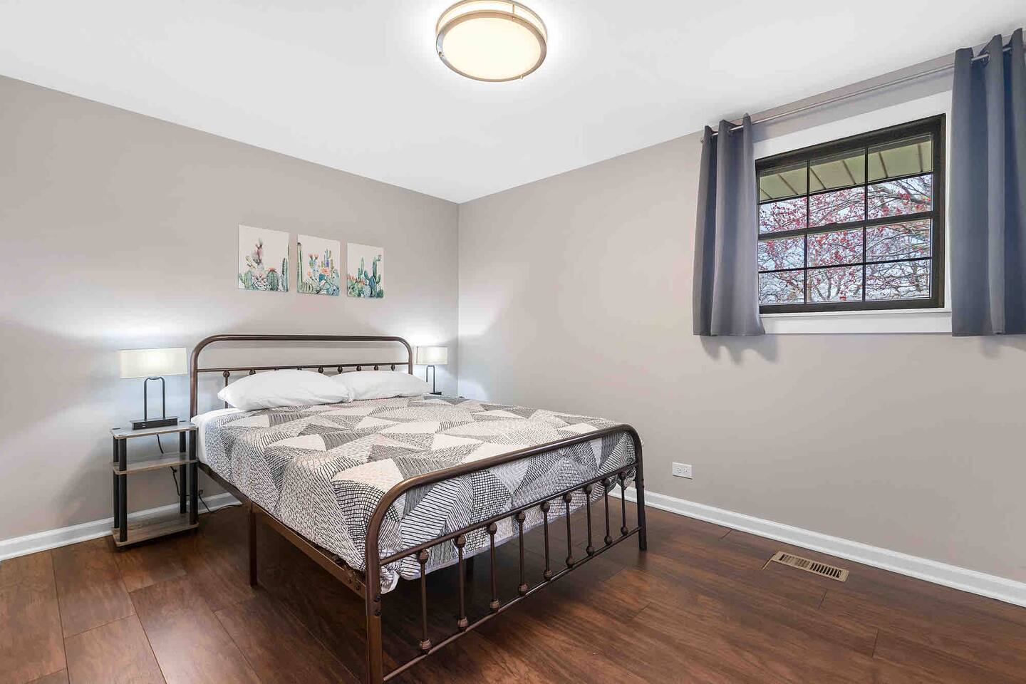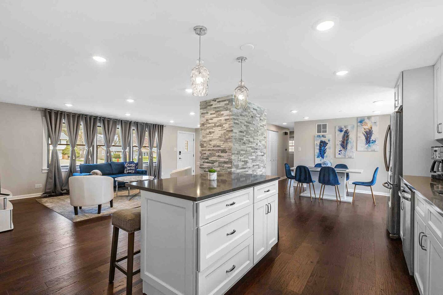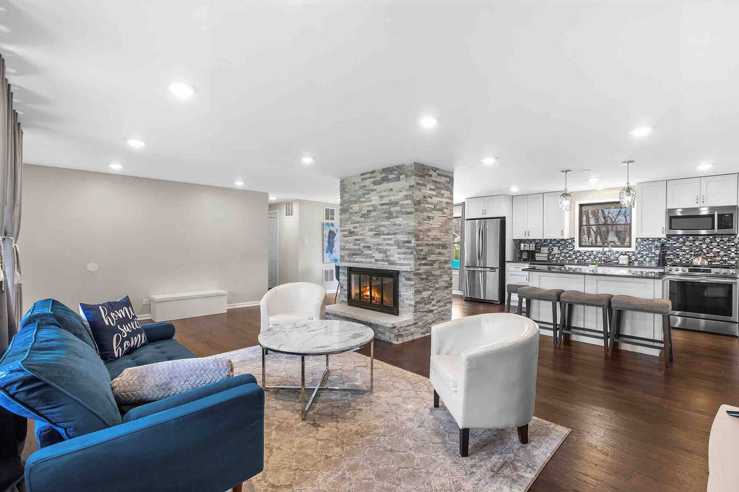 Welcome to "Radiance," you'r Schaumburg sanctuary, where luxury meets convenience. This spacious 4-bedroom, 2-bathroom home is designed to ensure your stay is nothing short of spectacular, comfortably accommodating up to 8 guests. This is a one level home so it is a perfect choice for guests with mobility issues, this home also features a large fully fenced in yard.