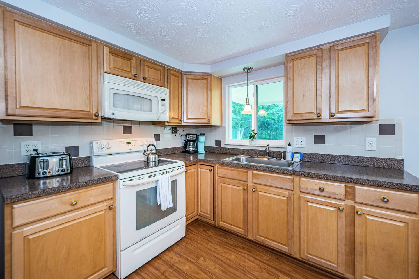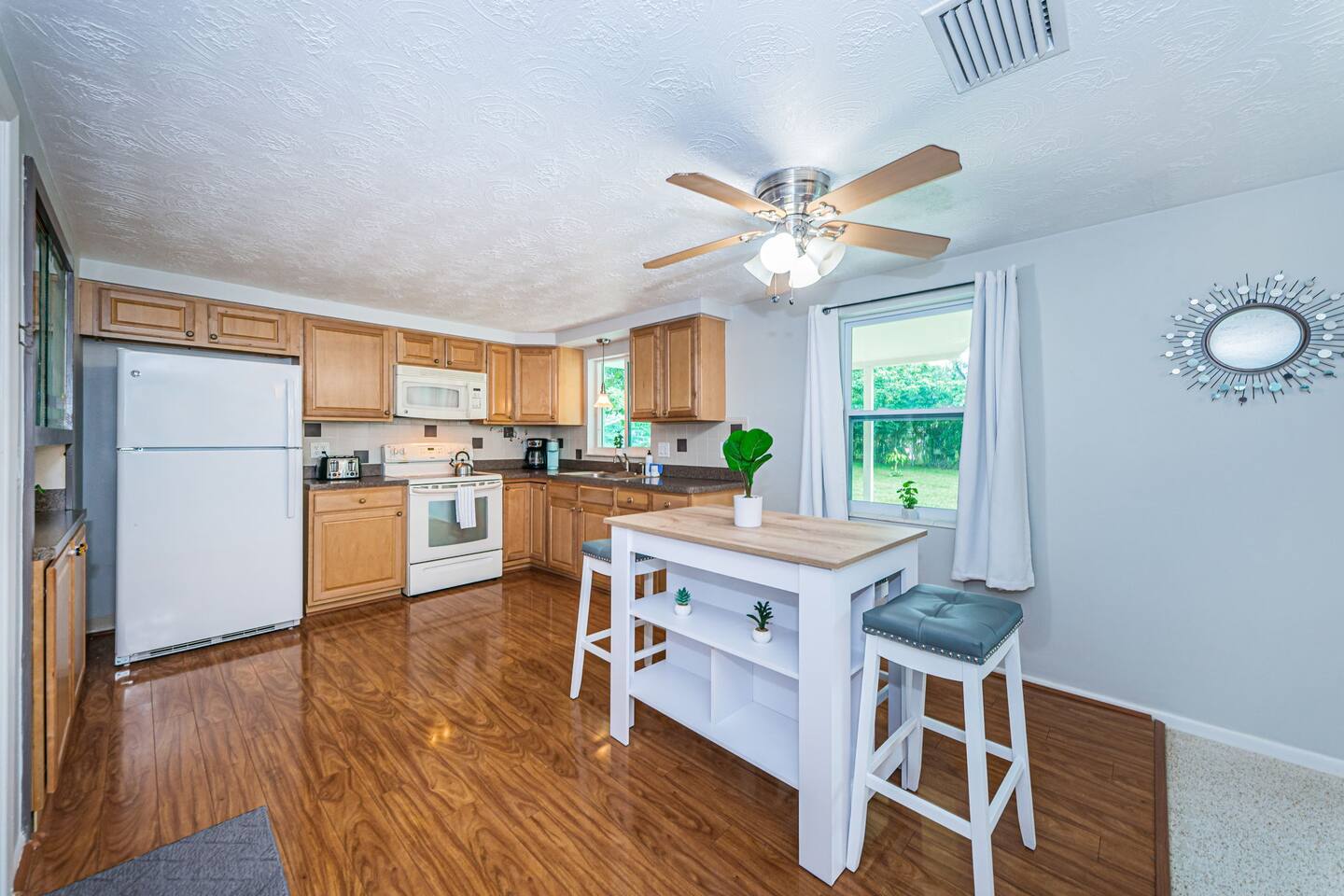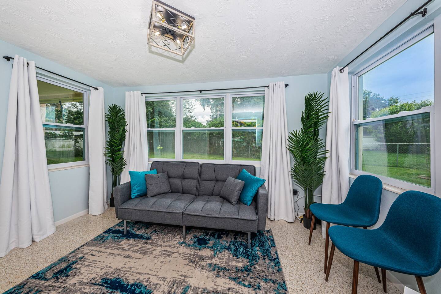 Inside, enjoy an open-concept kitchen, dining, and living area that flows seamlessly into the sunroom, creating a spacious and welcoming environment for gathering, relaxing, or unwinding after a day of exploring.