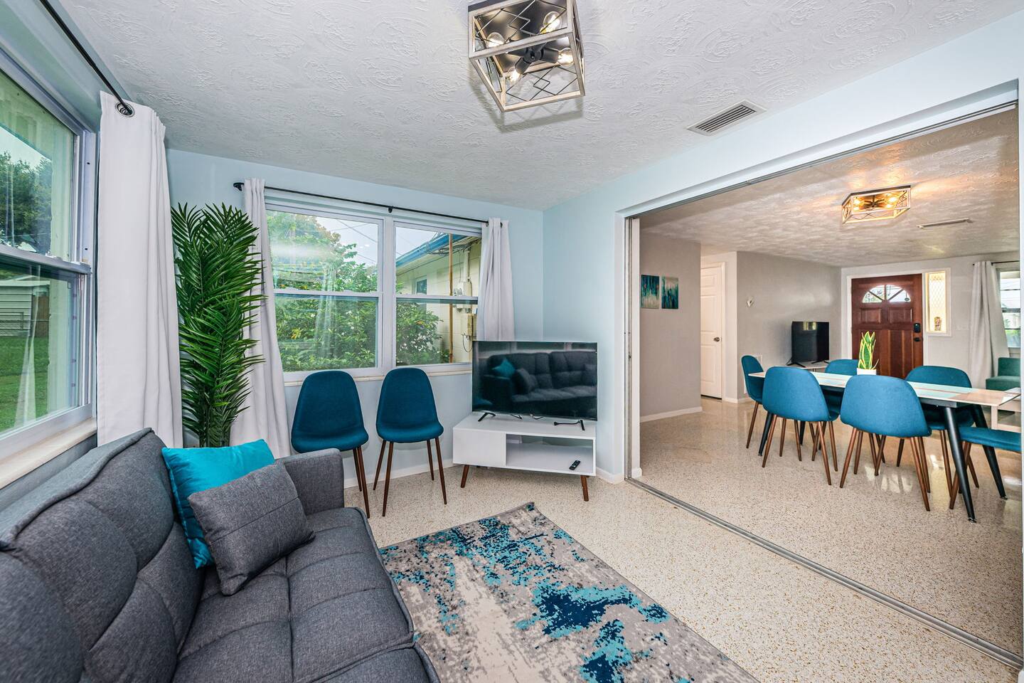 Kick back and relax in this calm, stylish, pet-friendly 2-bedroom, 2-bath home, featuring a bright sunroom that can also be used as a 3rd sleeping space. Thoughtfully updated and beautifully furnished, this inviting home offers the perfect blend of comfort, functionality, and Florida charmāideal for couples, families, extended stays, or guests traveling with pets.