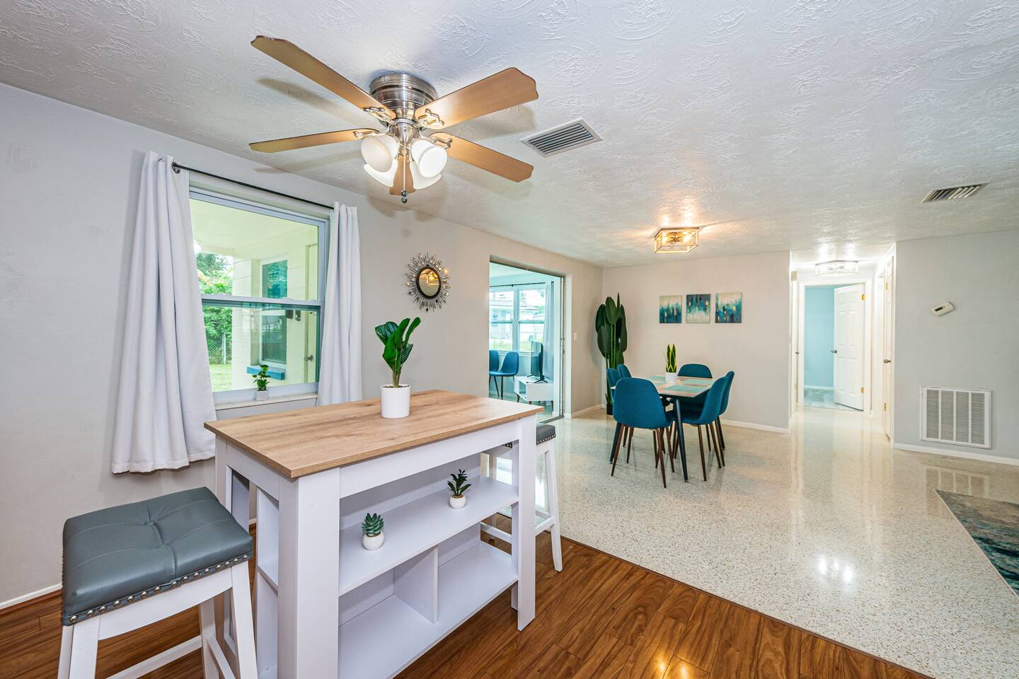 Step outside to a large, fully fenced yard, perfect for guests traveling with pets. The yard features multiple covered and furnished outdoor seating areas on both the front and back patiosāideal for dining, relaxing, reading, or enjoying the beautiful Florida weather. Fire up the grill, unwind with a book, or let your furry friends play freely in this private outdoor retreat.