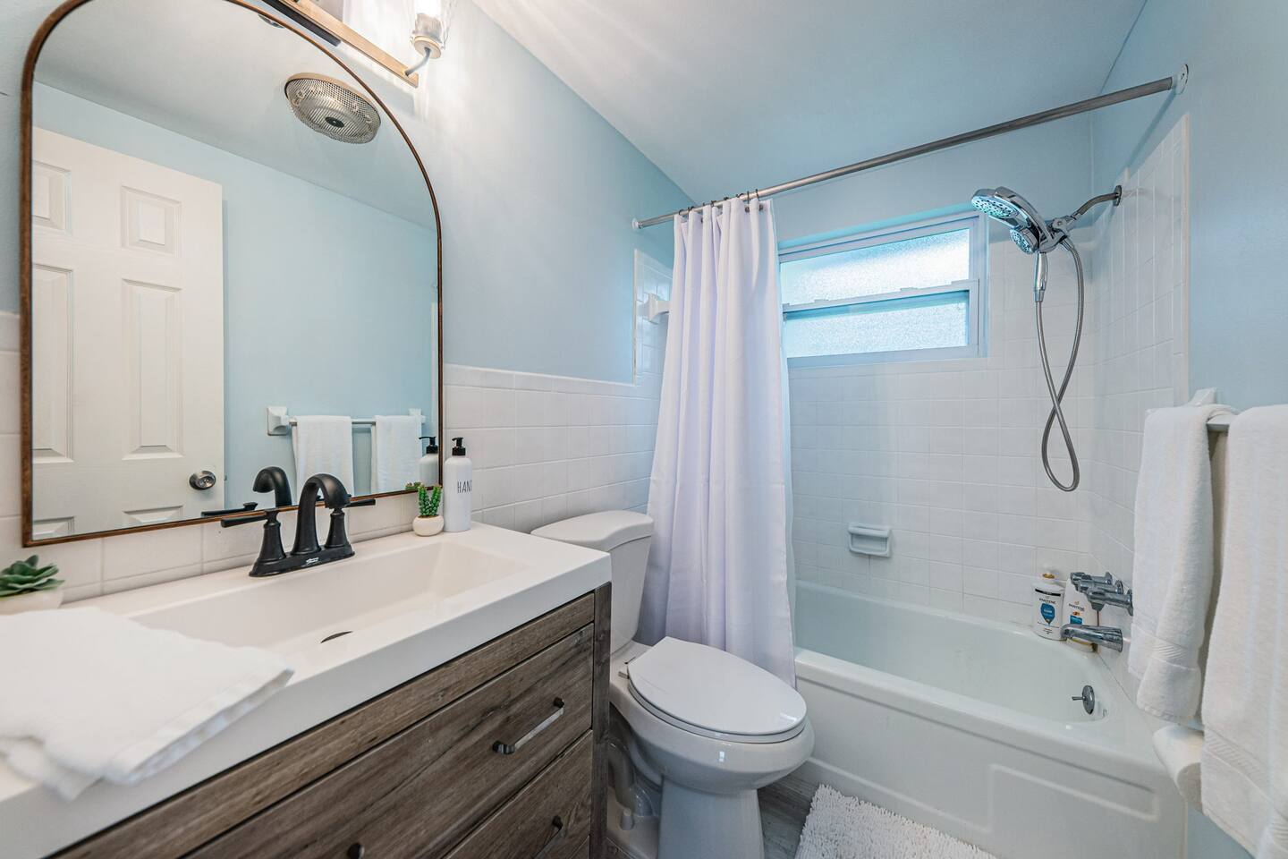 Kick back and relax in this calm, stylish 2-bedroom, 2-bath home featuring a beautiful sunroom that can be used as a 3rd bedroom. The home is updated and furnished with style, offering a cozy and comfortable atmosphere for your stay. Located just 15 minutes away from several local beaches, including Honeymoon Beach, Howard Park Beach, and Sunset Beach, this home is perfect for beach lovers. Spend your days soaking up the sun, swimming in the clear waters, or enjoying various beach activities.