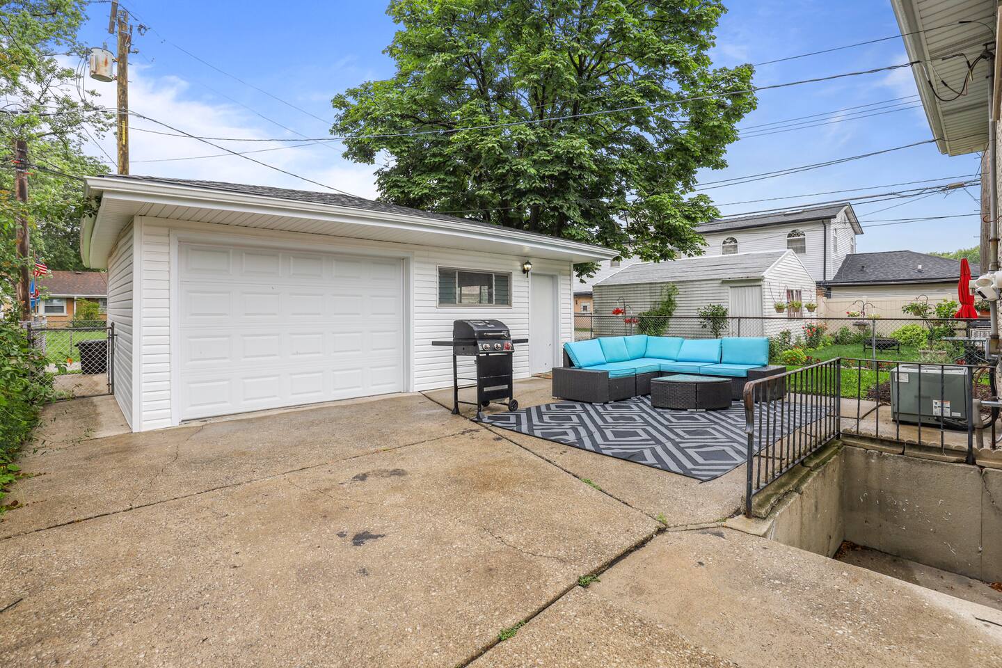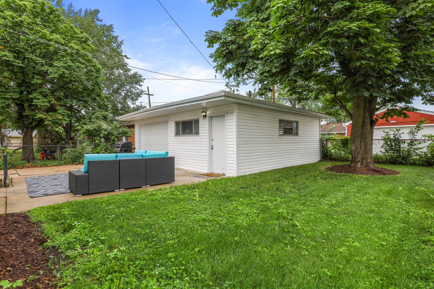 There is a partially fenced backyard that gives you privacy and a lounging area for your enjoyment