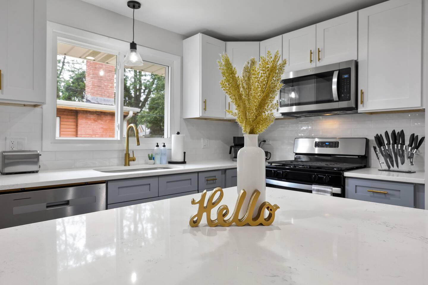 This stylish place to stay is perfect for group trips. This split level home has an open concept living room and dining room combo. The gorgeous kitchen has exceptional attention to detail. There are three bedrooms and one bathroom upstairs. Downstairs you’ll find a master suite equipped with its own living space and en suite bathroom. Relax outside on our sectional and enjoy BBQ time with your loved ones. There’s enough space for everyone to enjoy.
