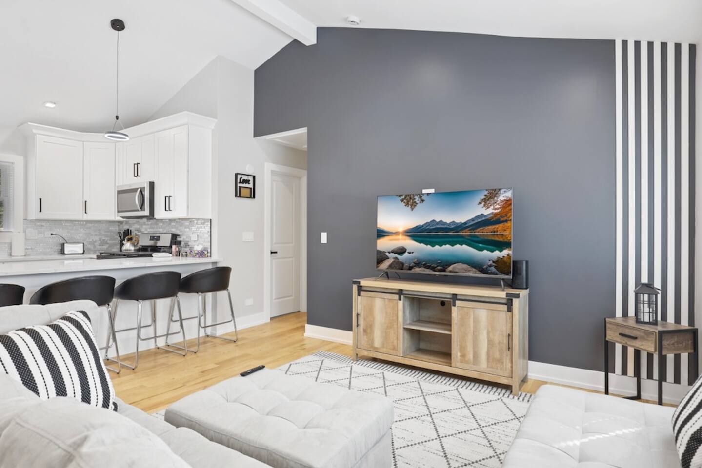 Home was newly remodeled and the finishes were very nice. Kitchen had all amenities needed. Bathroom had plush towels and some basic necessities. Beds were comfortable. Overall accommodations were perfect for our family. Blaine communicated very well through messages, which was helpful.